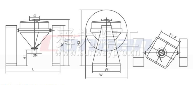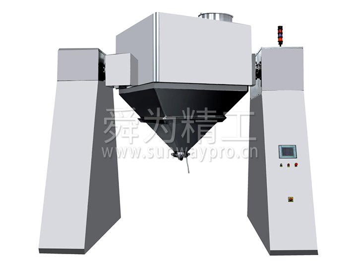 2、 料斗與旋轉軸成30度角,切向移動,使其快速翻轉,混合均勻。